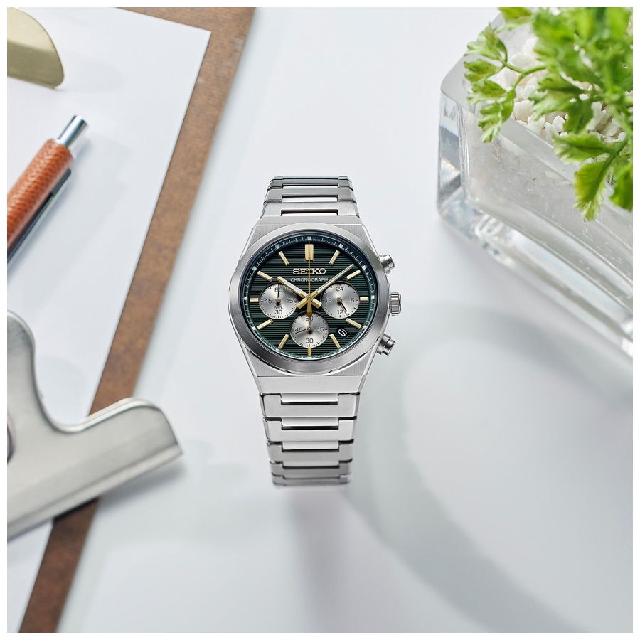 Il design del Seiko SSB461P1 si distingue per la sua presenza al polso, con una cassa dal look contemporaneo e un quadrante dal gusto tecnico e sportivo, pensato per garantire un’ottima leggibilità. Le finiture curate e l’impostazione tipica dei cronografi Seiko rendono questo modello particolarmente apprezzato da chi ama gli orologi dal profilo deciso, ma senza rinunciare all’eleganza.